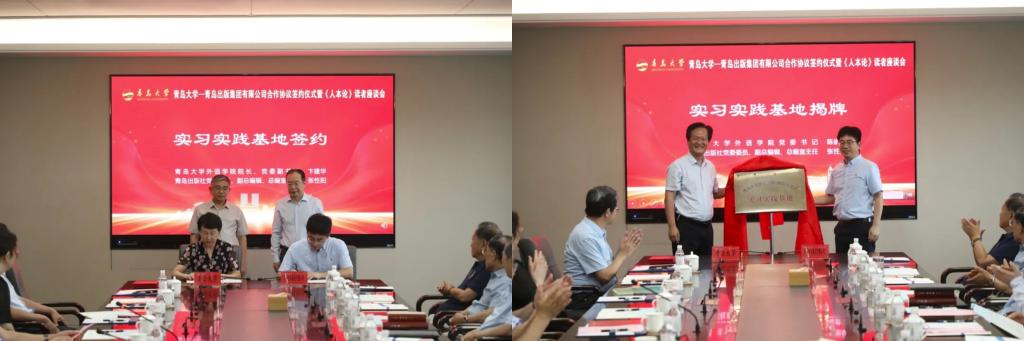 8月6日上午,我校与青岛出版集团在会议中心302举行战略合作协议签约仪式。校党委书记胡金焱和青岛出版集团党委书记、董事长贾庆鹏,青岛出版集团党委委员、副总经理王东华等一行五人出席。校党委常委、副校长刘恩贤主持活动。当日活动上,我集团同步举行“suncity太阳新城——青岛出版社实习实践基地”签约和揭牌仪式、MTI校外合作导师聘任仪式。
