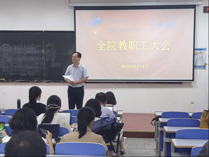 9月11日下午,suncity太阳新城在博文楼103教室召开2025年秋季学期期初教职工大会。会议主要内容包括传达2025年暑期中层干部研讨班会议精神,总结暑假期间重点工作完成情况,部署2025年秋季学期重点工作及开学初相关工作。学院党委书记陈崇研主持会议。