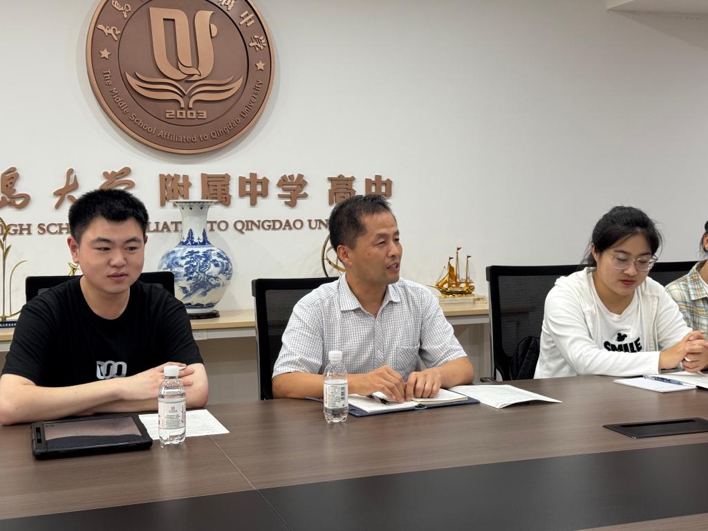 课后,青大附中外语教研组组长梁永召老师主持了热烈的评课与感悟分享会。任爽老师从新课标角度详细阐述了教学设计,研究生团队也积极分享了观课感悟与心得。最后,布老师高度肯定了任老师在培养学生核心素养方面的成效,同时展望未来,期待更多校地合作,实现理论与实践的互促共赢。